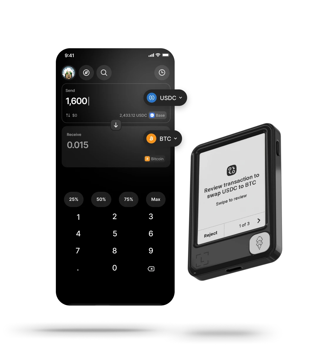 Pay everywhere you go with a simple tap. Collect rewards in stablecoins or BTC.