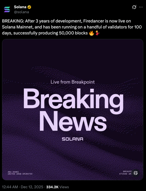 In 2025, the Solana network reached a major resilience milestone with the mainnet launch of Firedancer, a completely independent validator client developed by Jump Crypto. Built from the ground up, Firedancer seeks to prevent network crashes by giving network node operators another choice of software to use.