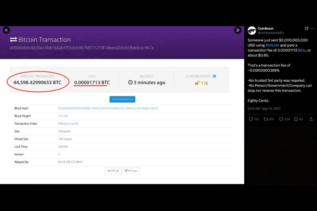 For context, someone once sent over $2,000,000,000 in BTC for a fee of just eighty cents.