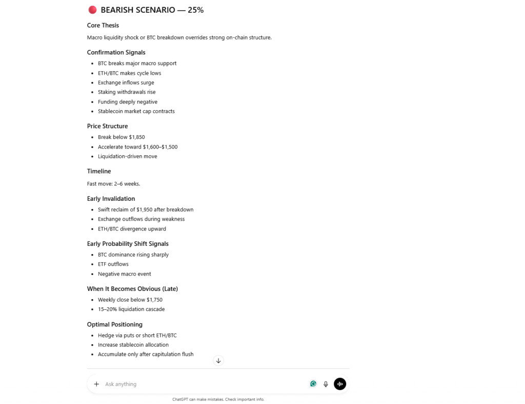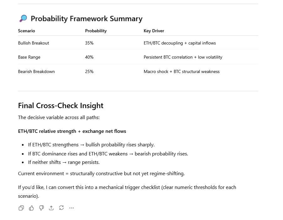 Use ChatGPT to map possible outcome paths and their probability ranges. Focus on conditional setups rather than absolute predictions.