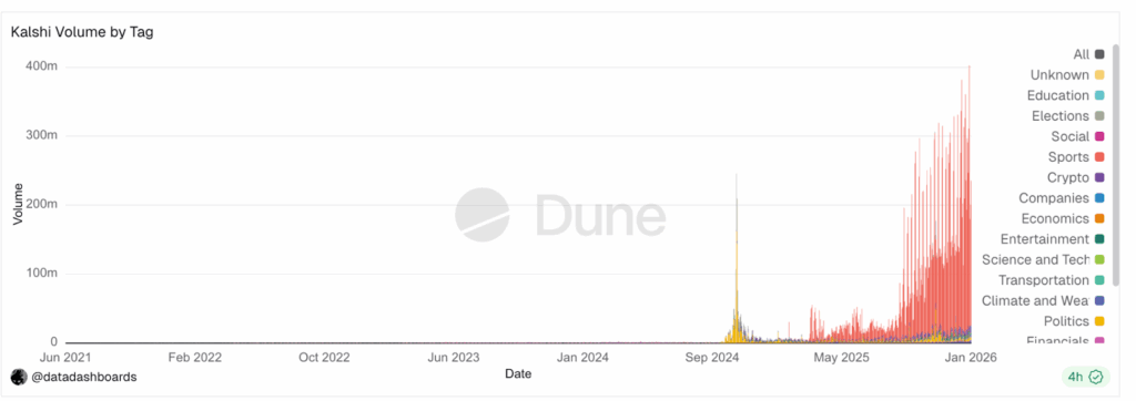 Sports trading accounts for roughly 90% of Kalshi’s volume, and a nationwide class action filed in late 2025 alleges that the platform functions primarily as an illegal sportsbook operating under the cover of federal regulation.