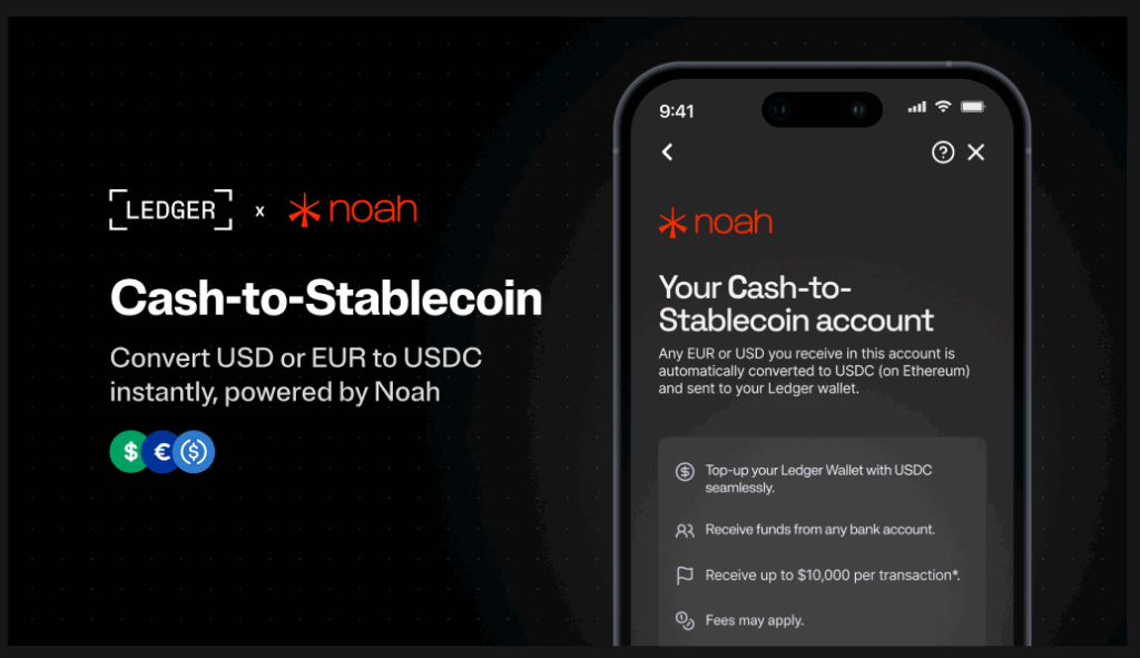 Introducing Cash-to-Stablecoin in Ledger Wallet, deposit fiat, convert to USDC or USDT with Noah, and stay fully in control.