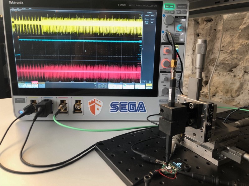 LFI is one of the key physical attack techniques that the Donjon uses in its testing. In this process, the team uses an oscilloscope to identify an appropriate timing window before using a microscope and laser to target specific regions of the chip.